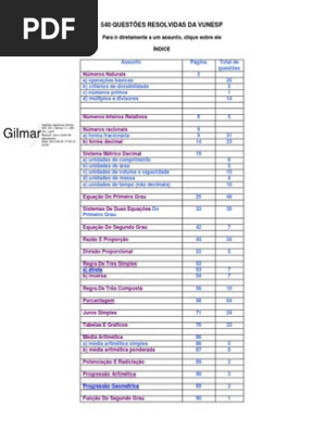 Vunesp 540 Questoes Equacoes Matematica Elementar