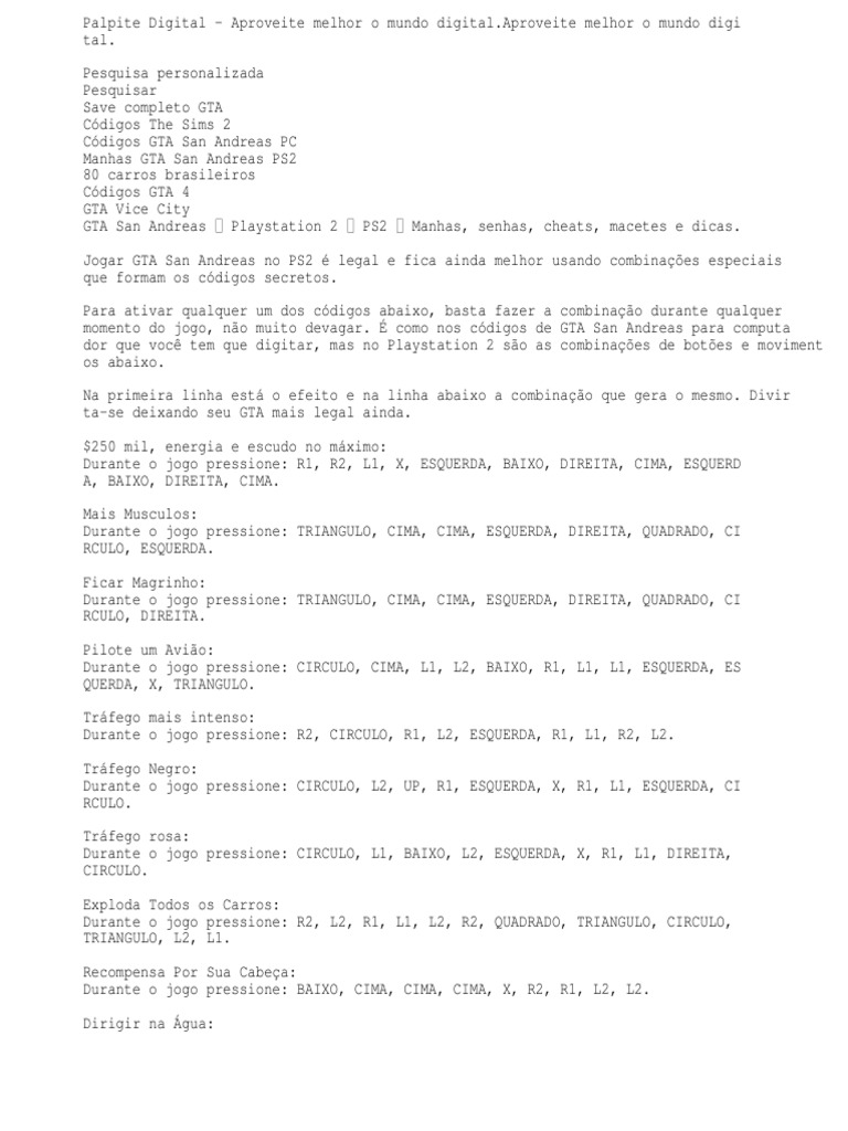 80 Codigos De Gta San Andreas Ps2 Todos Testados San