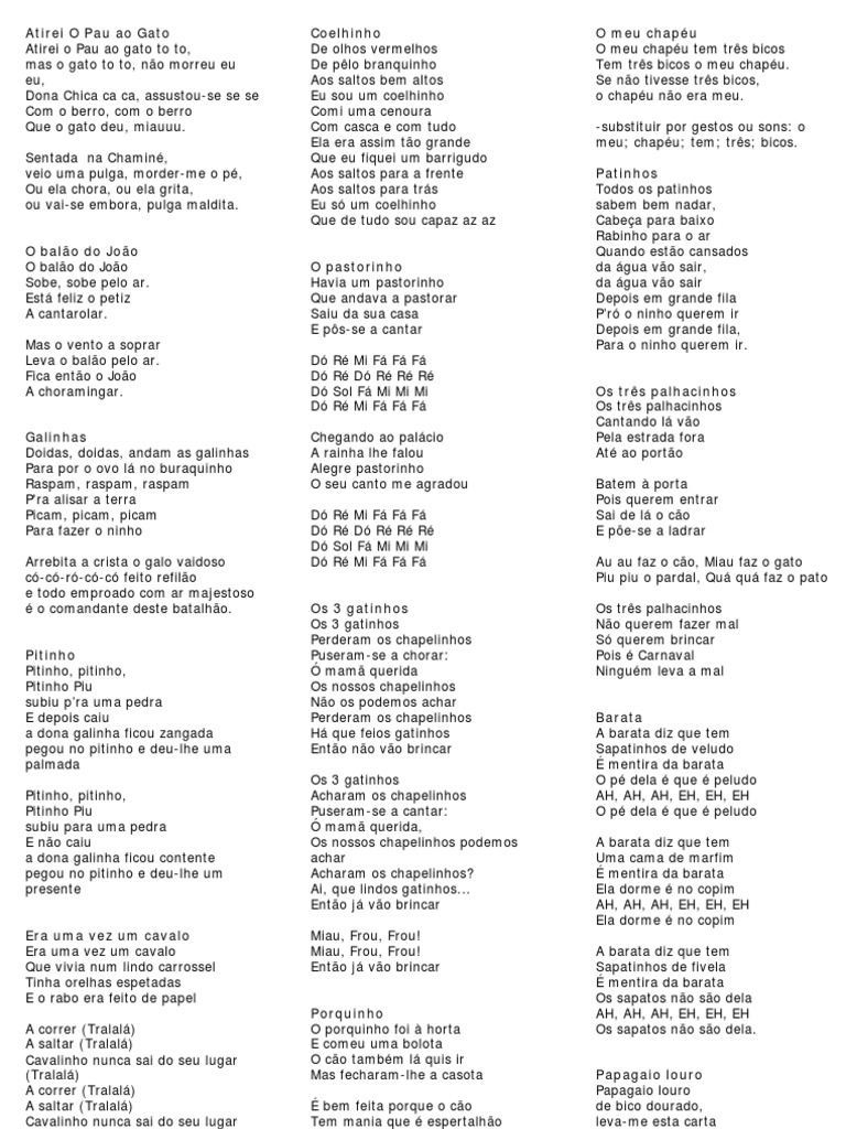 Musicas E Cantigas Temas Infantis Para Imprimir Letras De