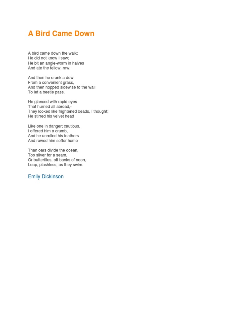 A Bird Came Down The Walk By Emily Dickinson Poem Structure