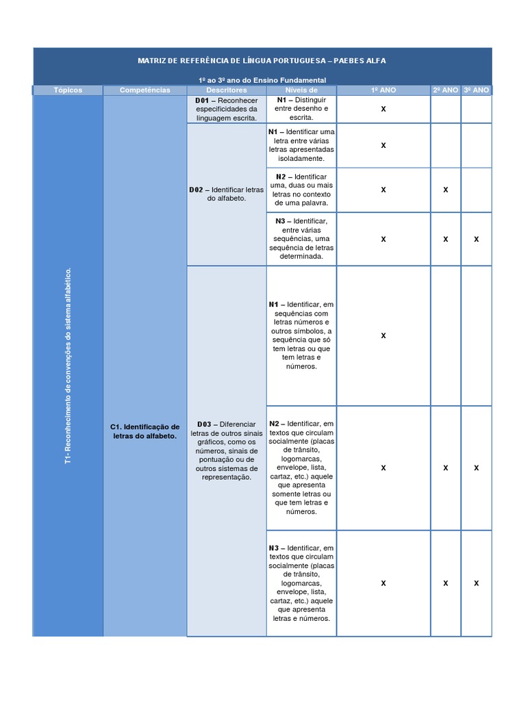 Matriz De Referencia De Lingua Portuguesa Paebes Alfa 2 Onda Pdf