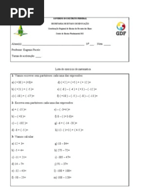 Exercicio De Soma E Subtracao Com Numeros Inteiros Doc