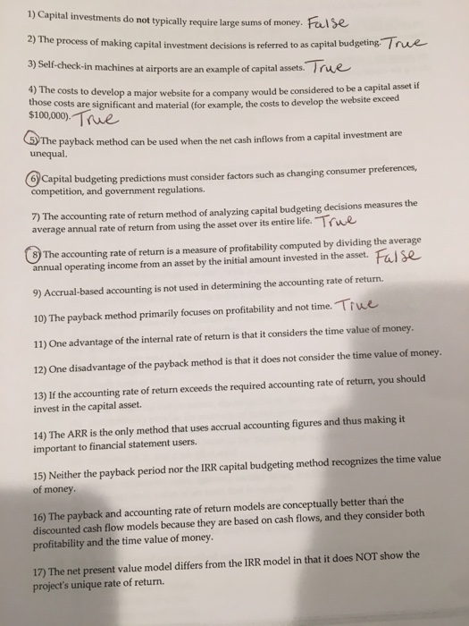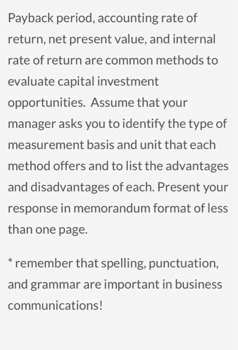 Evaluate The Payback And Accounting Rate Of Return In Capital