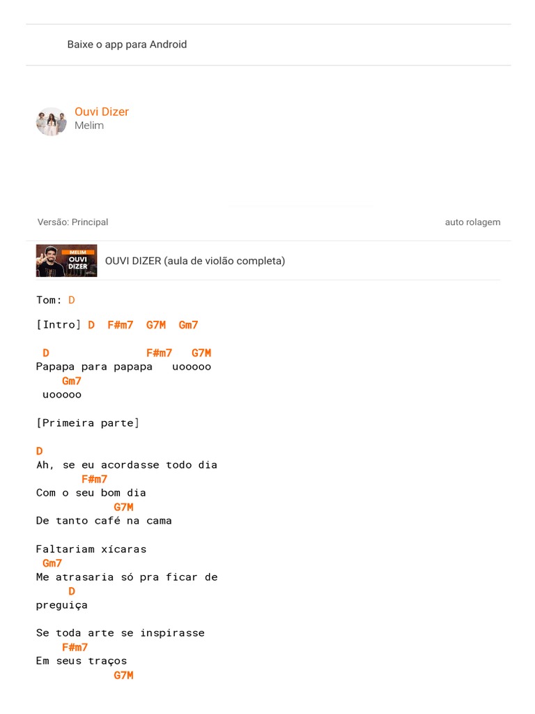 Ouvi Dizer Melim Cifra E Tablatura De Violao E Guitarra