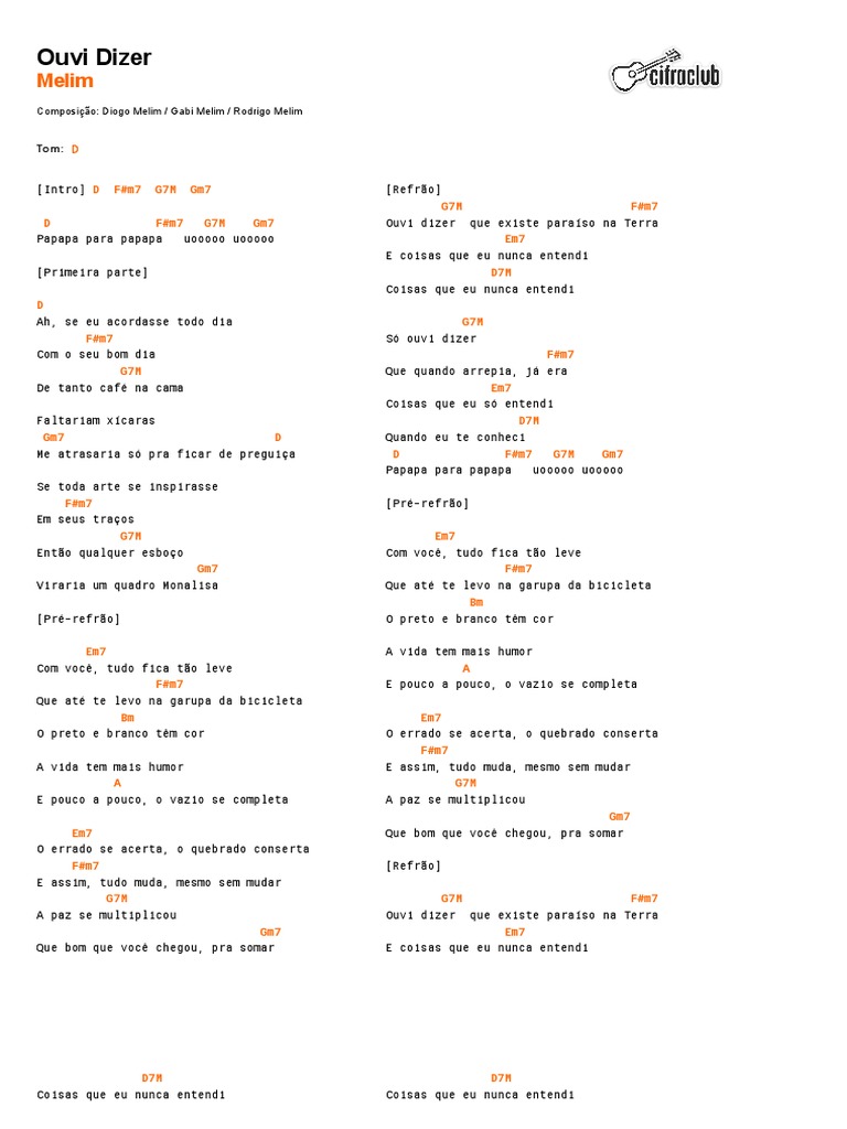 Ouvi Dizer Melim Cifra Club