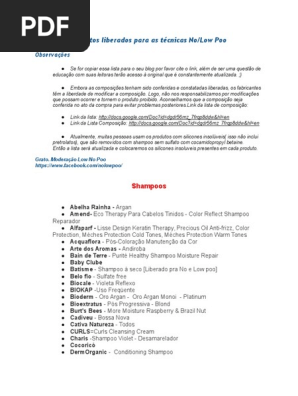 Gostando Da Vida Lista De No E Low Poo Atualizada