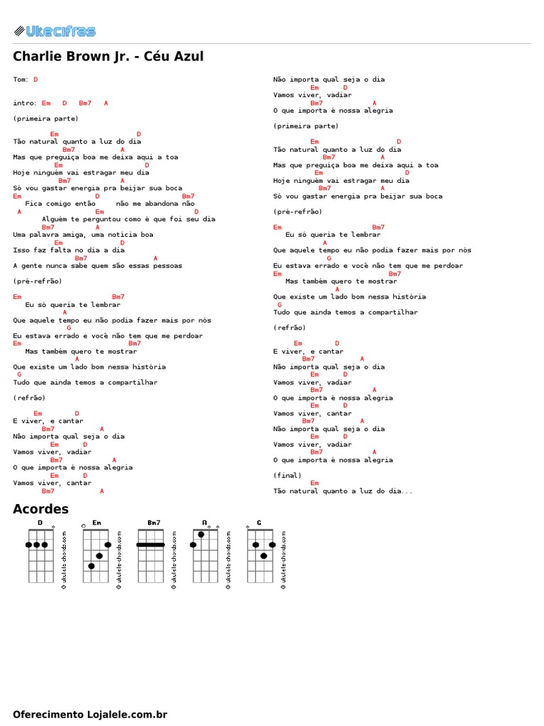 Charlie Brown Jr Ceu Azul Uke Cifras Ceu Entretenimento