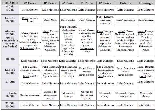 Cardapios Para Bebes De 6 Meses Cardapio Bebe 6 Meses Bebe De 6