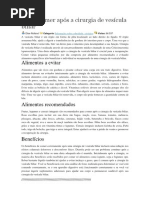 O Que Comer Depois De Retirar A Vesicula Pedra Na Vesicula