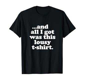 And all i got was this lousy all got lousy and all i got was this lousy generator all i got was this lousy meaning and all i got was this lousy ys origin all i got was this song i killed god and all i. The shirt says my brother went to the moon and all i got is this lousy t shirt. My parents went to x and all i got was this lousy t shirt where x is a popular tourist destination like hawaii or vegas. I died for this cause and all i got was this lousy t shirt slim fit t shirt.