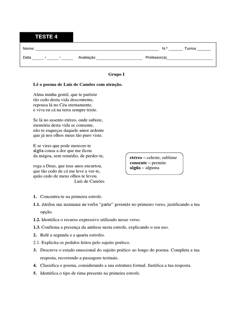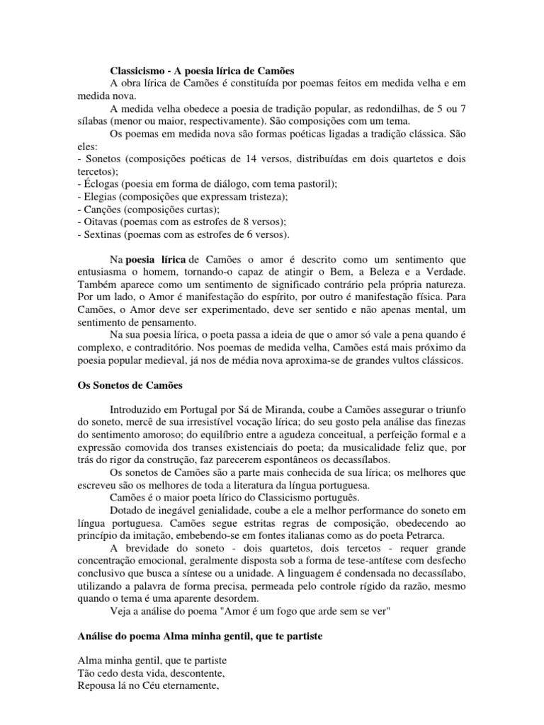 Esquemas Sintese Do Poema Alma Minha Gentil Que Te Partiste