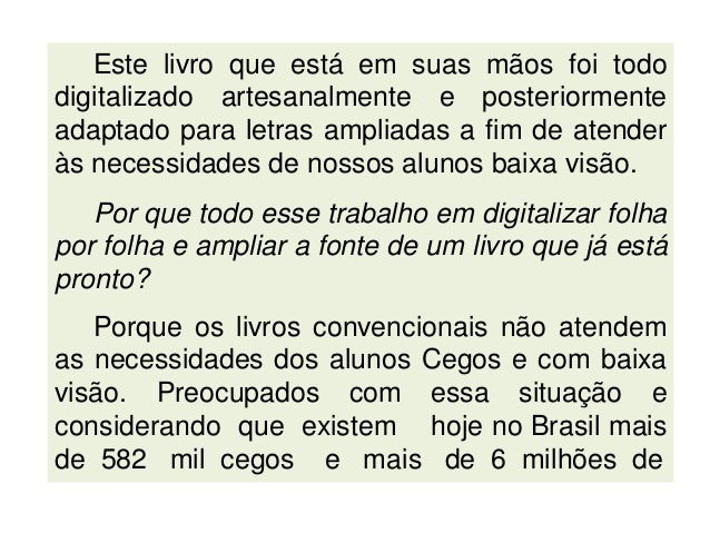 Alunos cegos atividades ampliadas para alunos com baixa visão para imprimir. Para alunos com baixa visão os materiais devem ser preparados de maneira ampliada e com cores fortes como preto ou vermelho que dão mais destaque. Veja mais ideias sobre baixa visão educação infantil atividades. Atividades de inclusão para alunos cegos e com baixa visão em aulas regulares de língua estrangeira anabela martins ferreira dissertação de mestrado faculdade de letras da universidade do porto 2014 texto integral pdf aqui. Apresentar o texto com fontes gradativas de aumento para descobrir o tamanho ideal para o aluno.