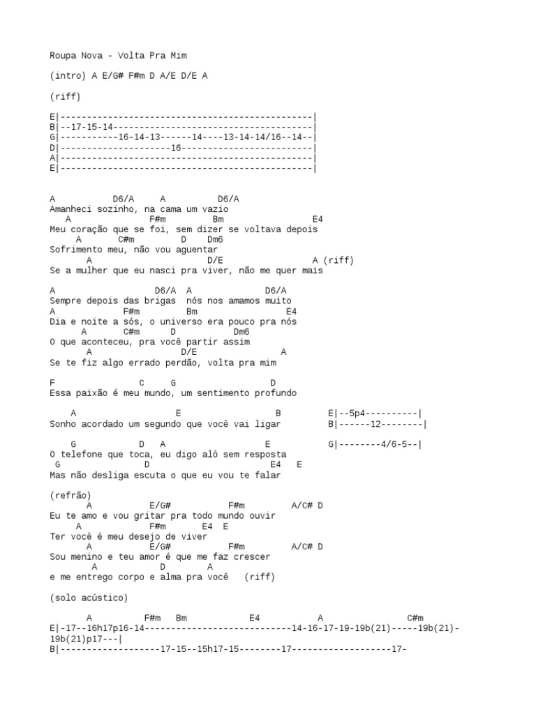 Notas Do Fer Volta Pra Mim Roupa Nova