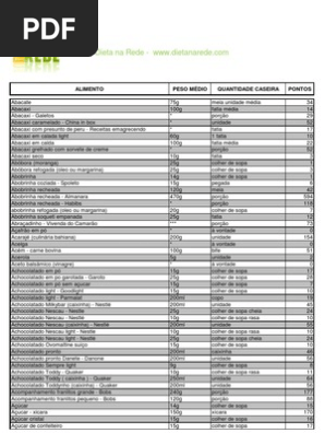 Tabela De Ponto Dieta Na Rede Pdf Copia Chocolate Banana