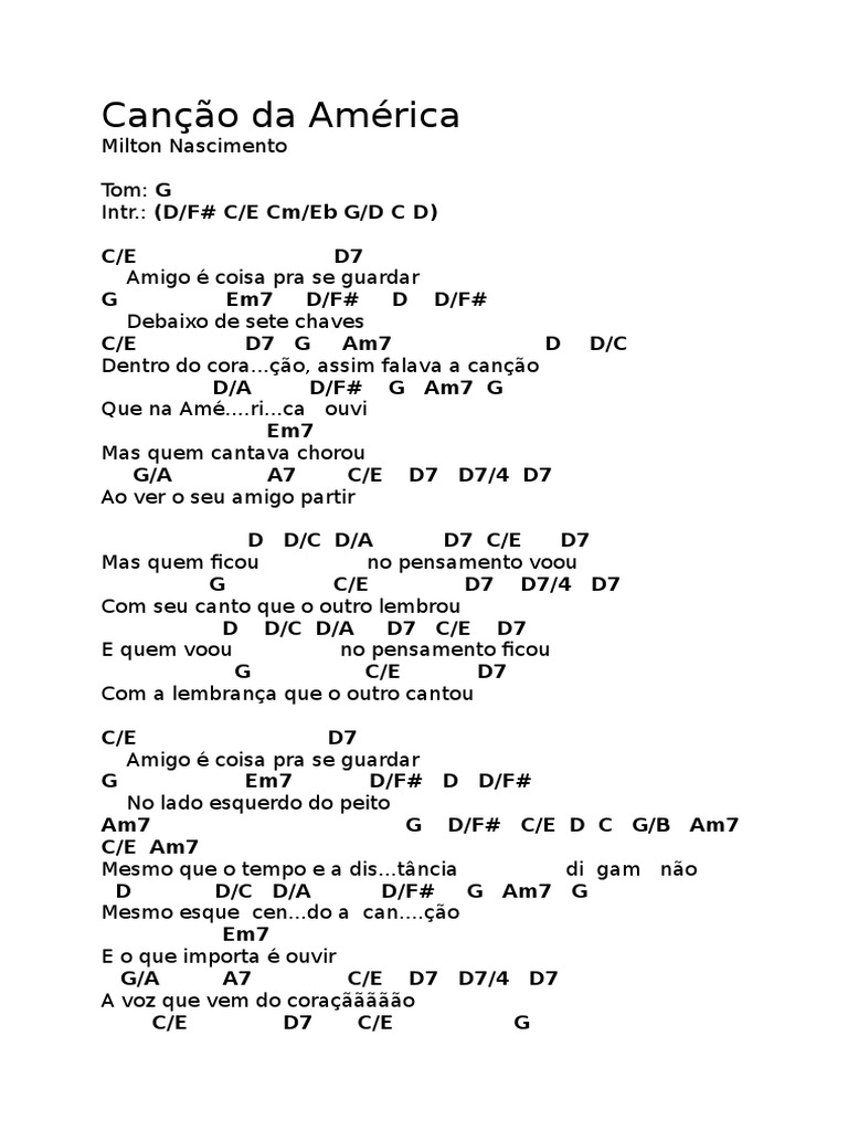 Cancao Da America Milton Nascimento Letra Da Musica Cifra Club