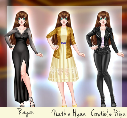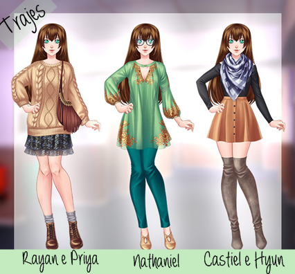 Traje 1 Hyun E Rayan Traje 2 Castiel Traje 3 Nathaniel E Priya