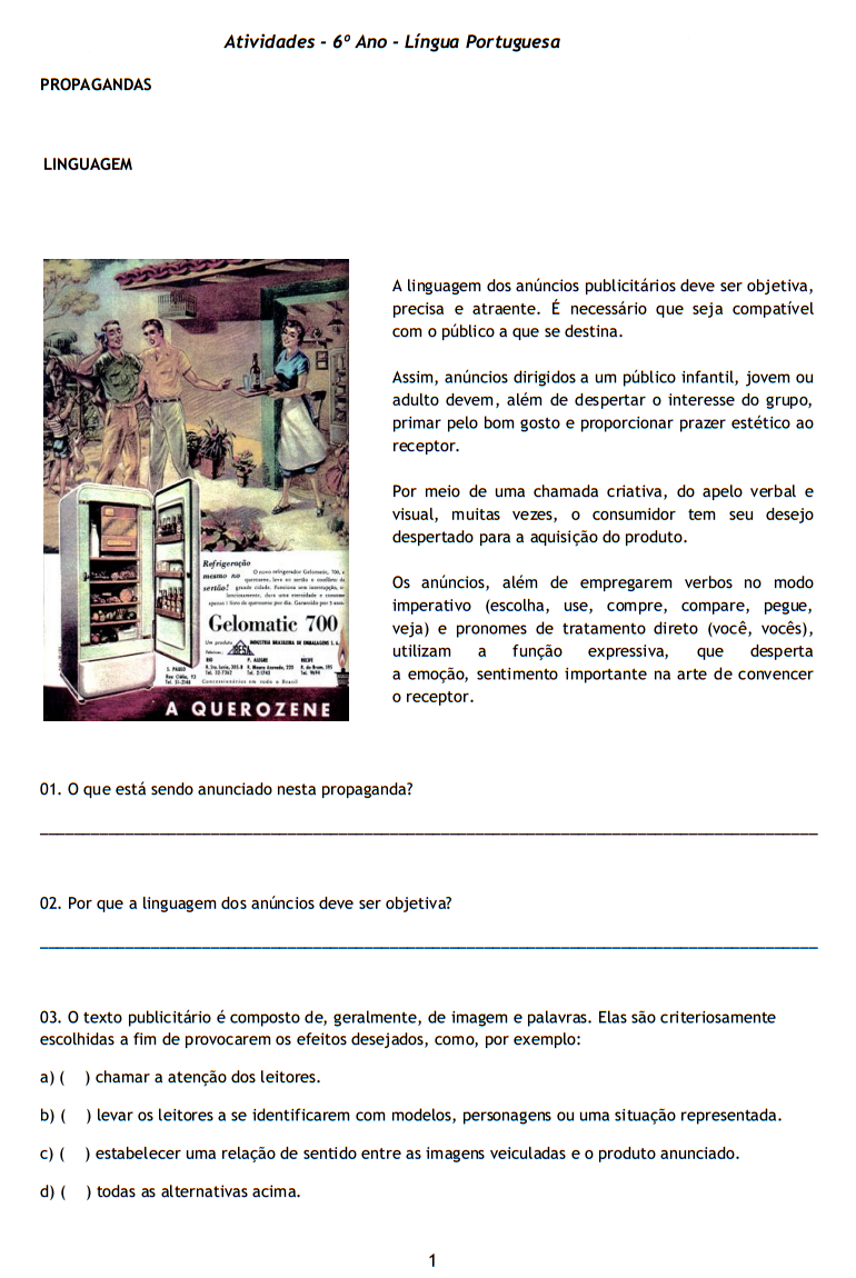 Atividade Propaganda Anuncio Publicitario 8 E 9 Anos