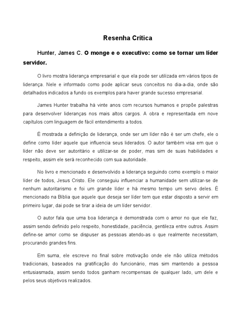 Resenha Critica O Monge E O Executivo Lideranca Lideranca E