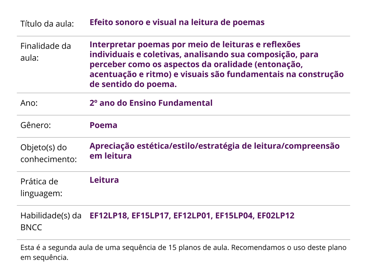Plano De Aula 2º Ano Lingua Portuguesa Efeito Sonoro E