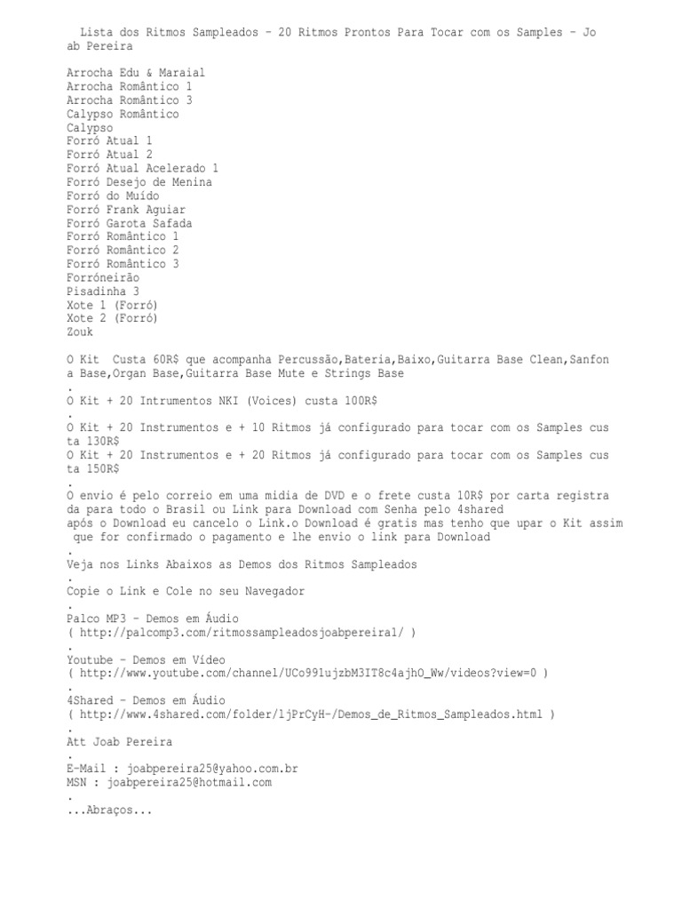 Kit Samples De Forro Joab Pereira Musica Popular Artes Cenicas