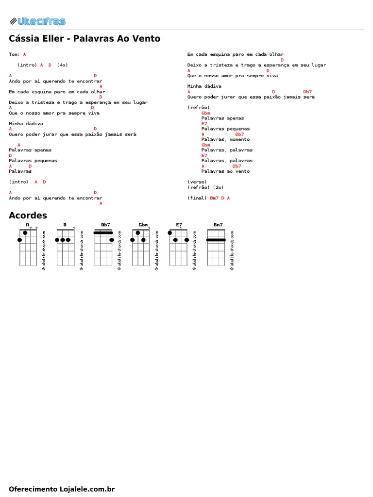 Palavras Ao Vento Cassia Eller Ukulele Versao Simplificada Opus 3 Blog