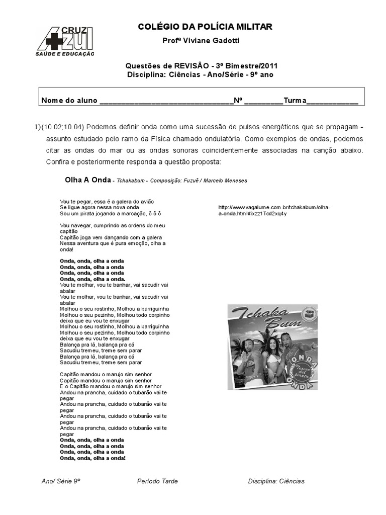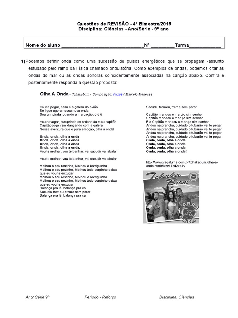 Questoes De Revisao 9ano 3bim Ondas Ligacao Quimica
