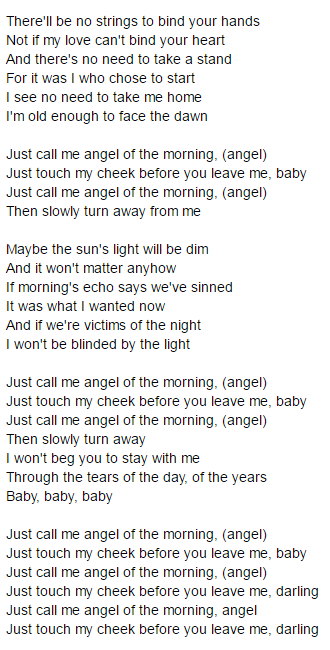 Angel Of The Morning Juice Newton Lyrics Morning Juice Angel