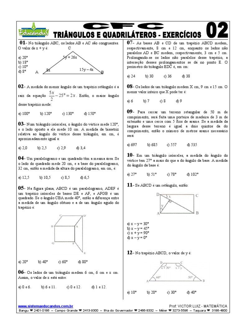 Exercicios Triangulos E Quadrilateros Cfc 02 Triangulo