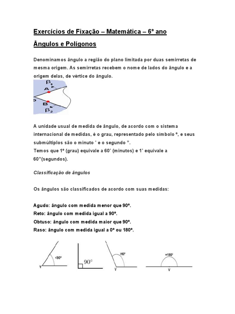 Exercicios Fixacao 6 Ano Angulos E Poligonos
