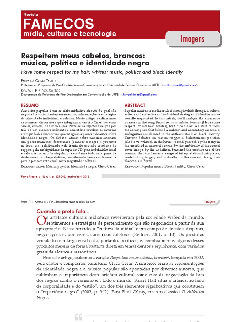 Respeitem Meus Cabelos Brancos Musica Politica E Identidade Negra