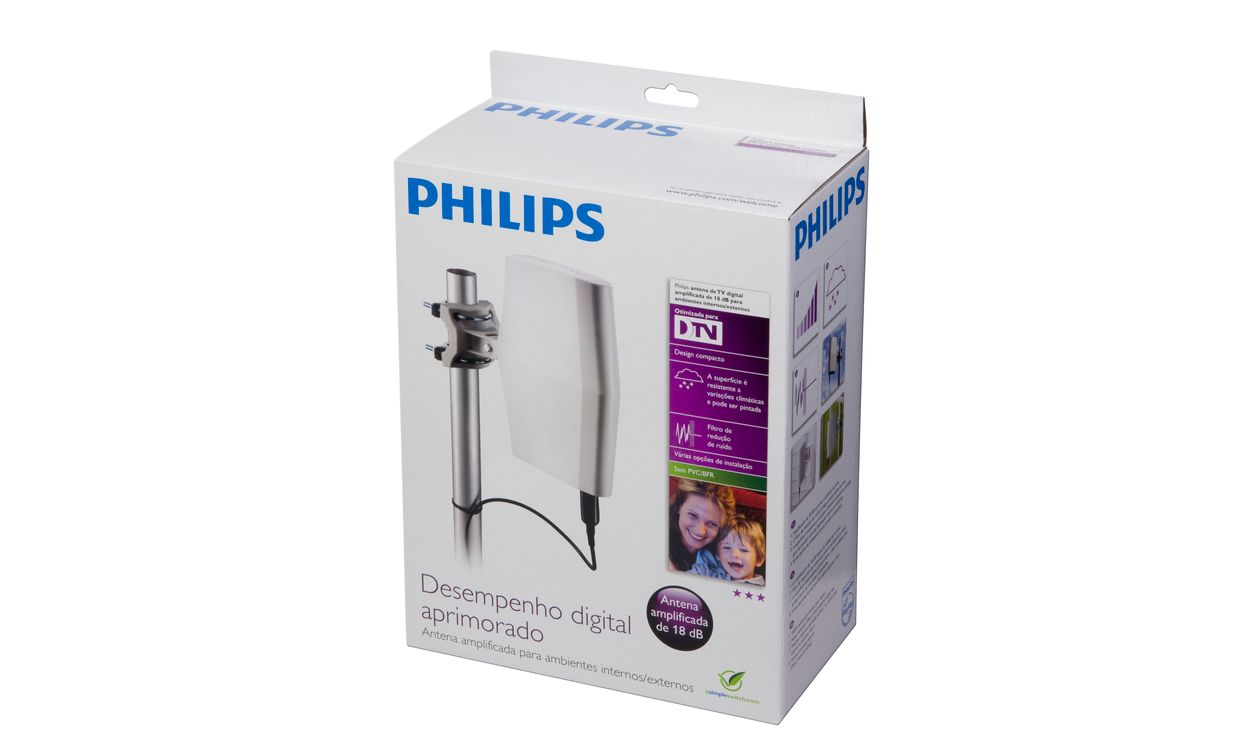 Antena philips sdv2940 amplificada 18db tv digital hdtv uhf