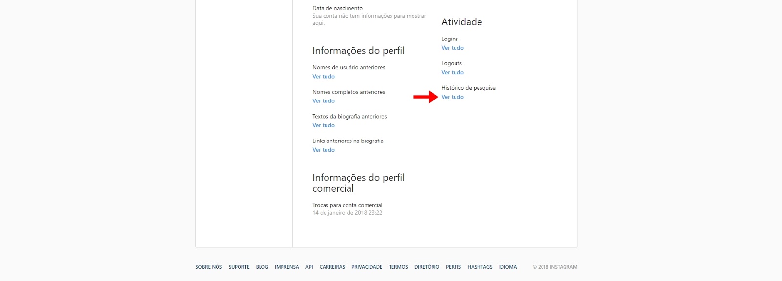 Apagar historico de pesquisa no instagram