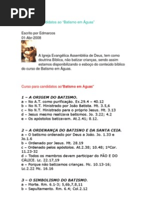 8 Apostilas Sobre Batismo Nas Aguas Evangelico Para Baixar Em