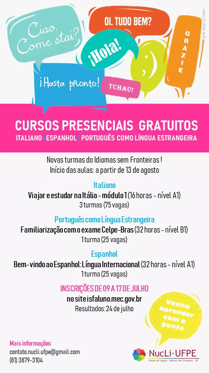 Nucli Oferta Cursos Gratuitos Presenciais De Italiano Espanhol E
