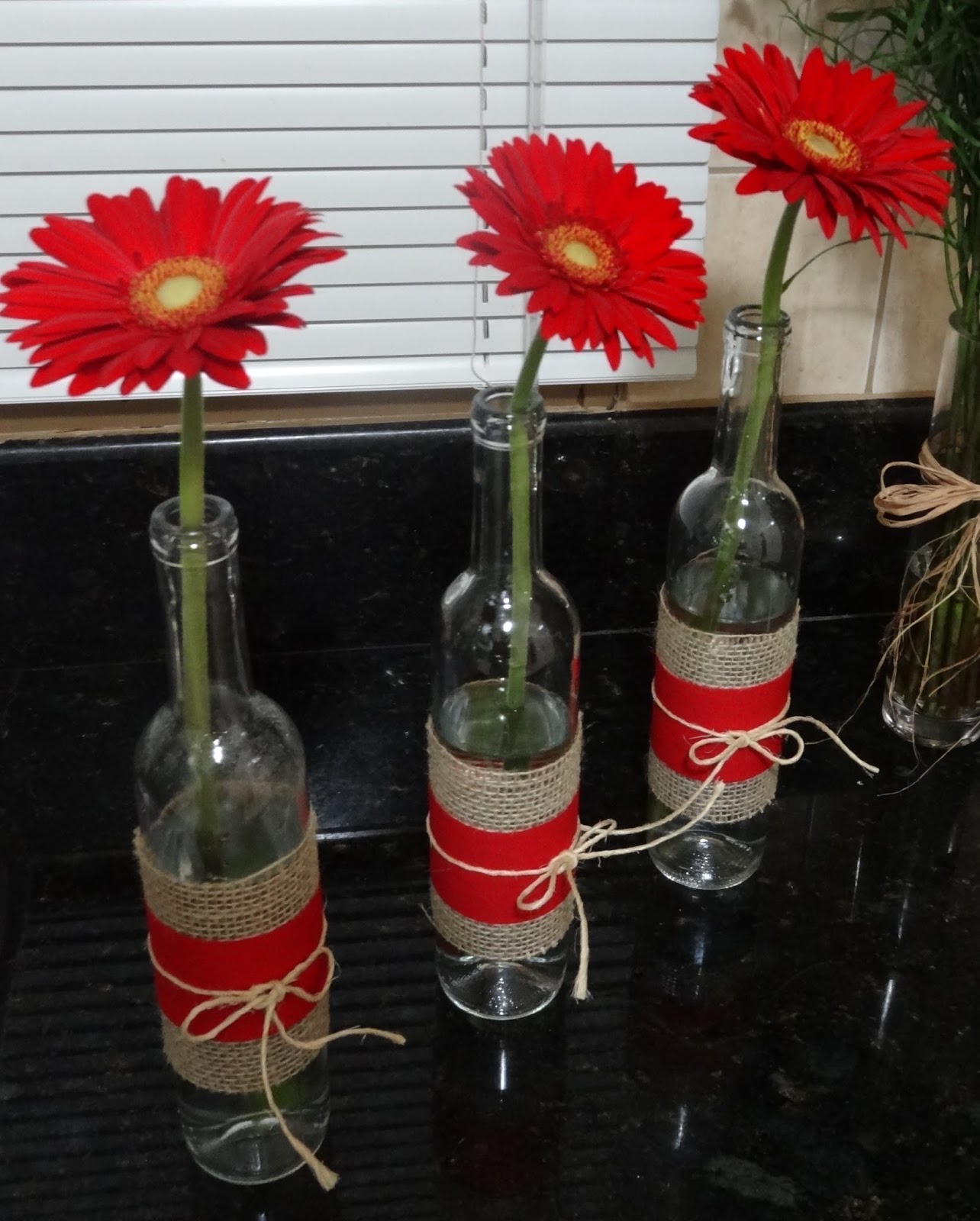 Wildflowers Displayed In Milk Bottles Tied Up With Twine In