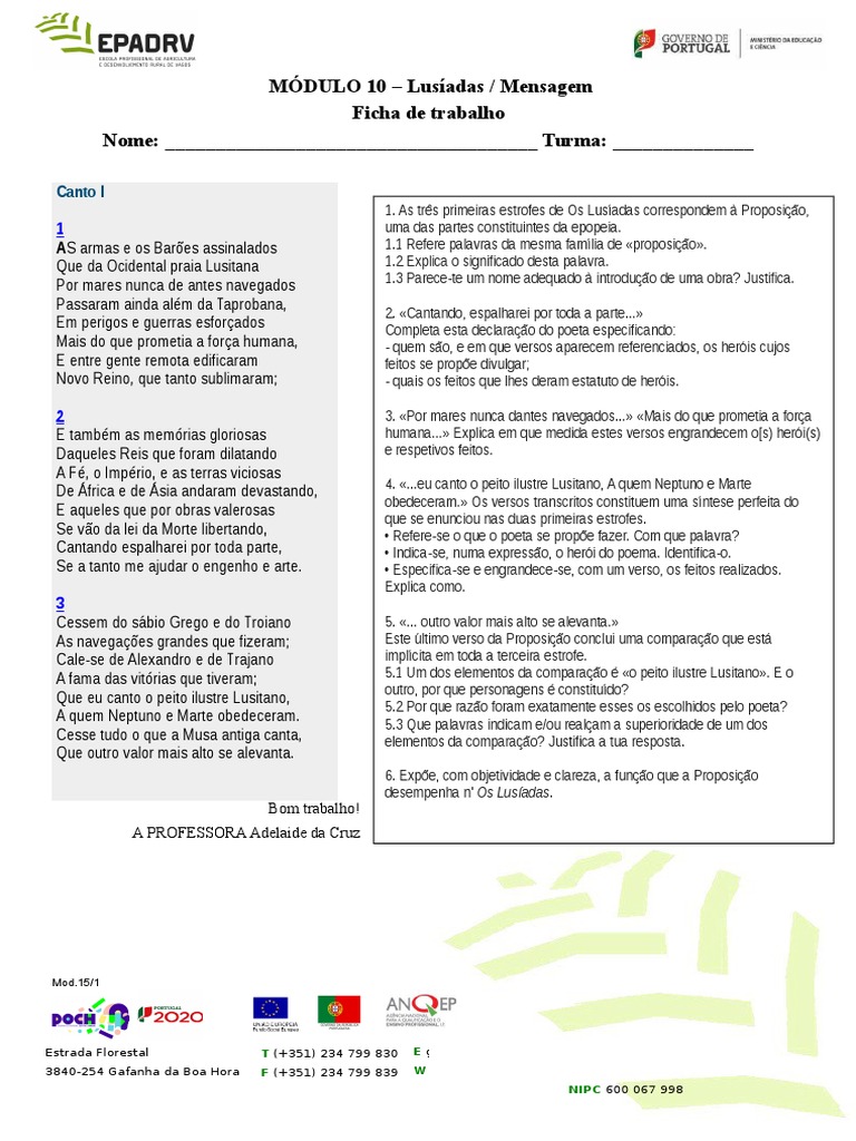 Os Lusiadas Mensagem Notas Para O Estudo Ppt Carregar