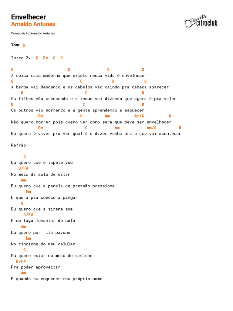 Cifra Club Arnaldo Antunes Envelhecer Lazer