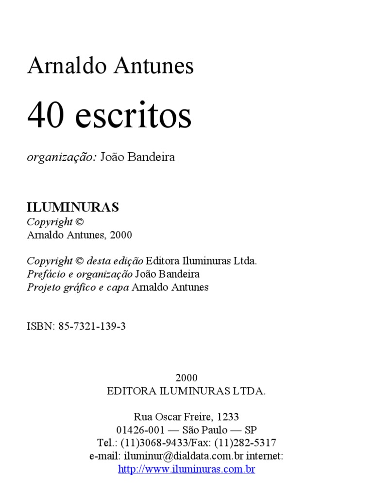 Pdf Arnaldo Antunes 40 Escritos Cazanova Caza Academia Edu