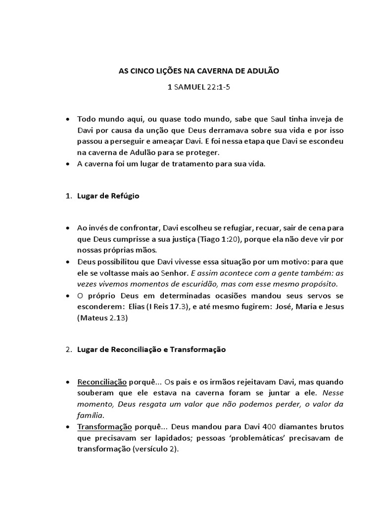 As Cinco Licoes Na Caverna De Adulao Davi Oracao