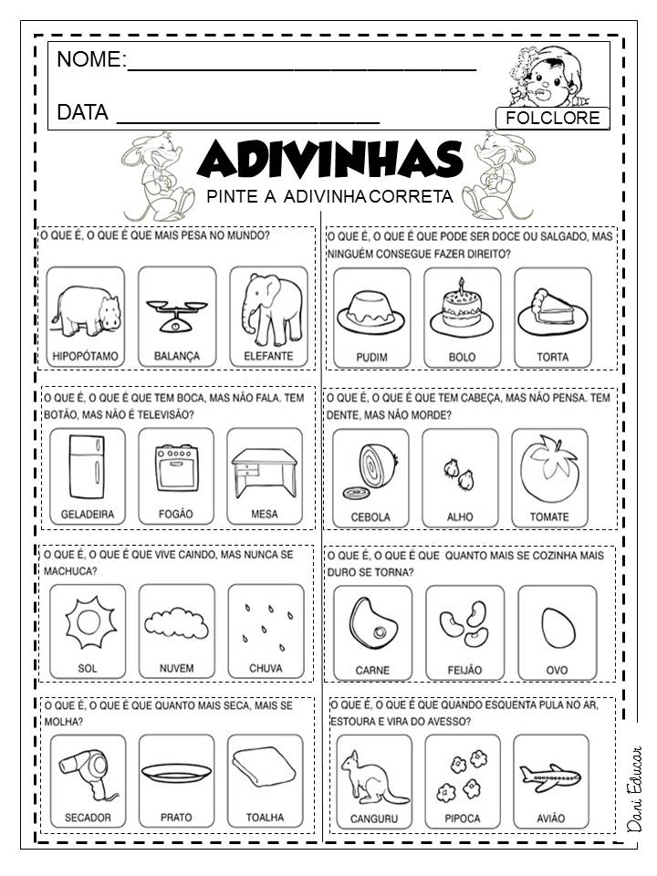 Folclore Atividades Com Adivinhas Para Imprimir Atividades De
