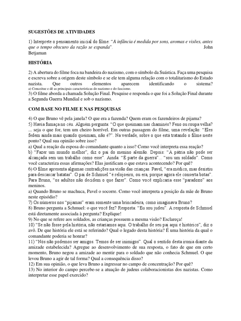 50 Atividade Sobre O Filme O Menino De Pijama Listrado