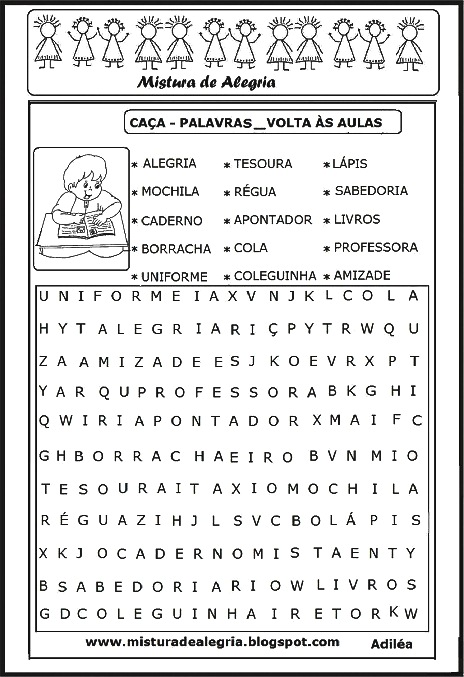Volta As Aulas Com Imagens Caca Palavras Tarefas Para