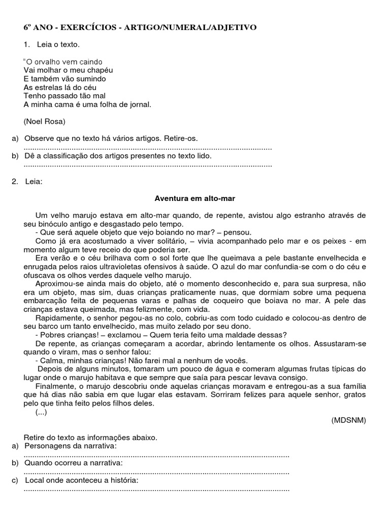 50 Atividades Artigo E Numeral Ensino Medio Com Gabarito