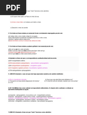 Atividade De Portugues Questoes Sobre Numerais 7º Ano