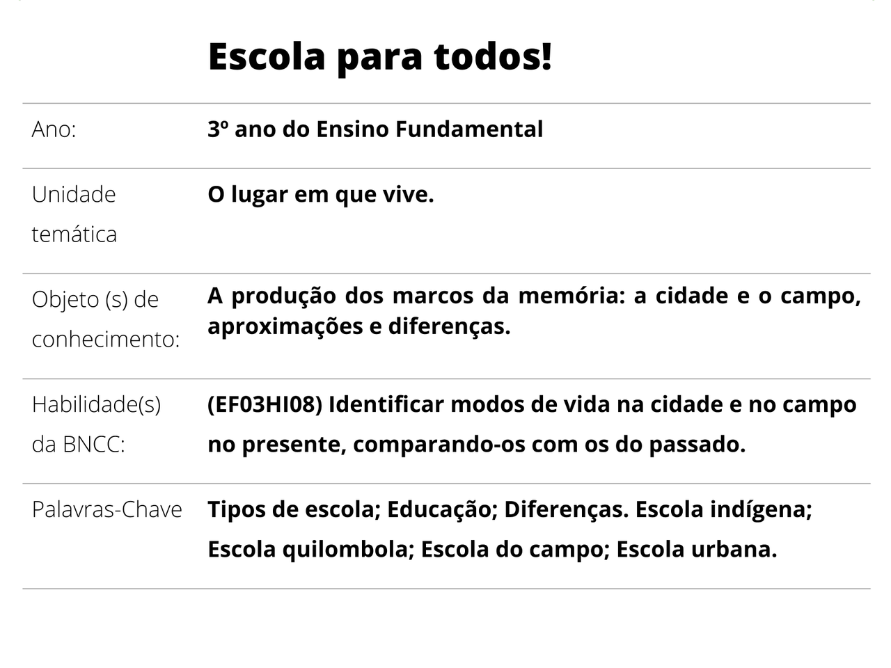 Plano De Aula 3º Ano Historia Rural E Urbano Hora De Comparar