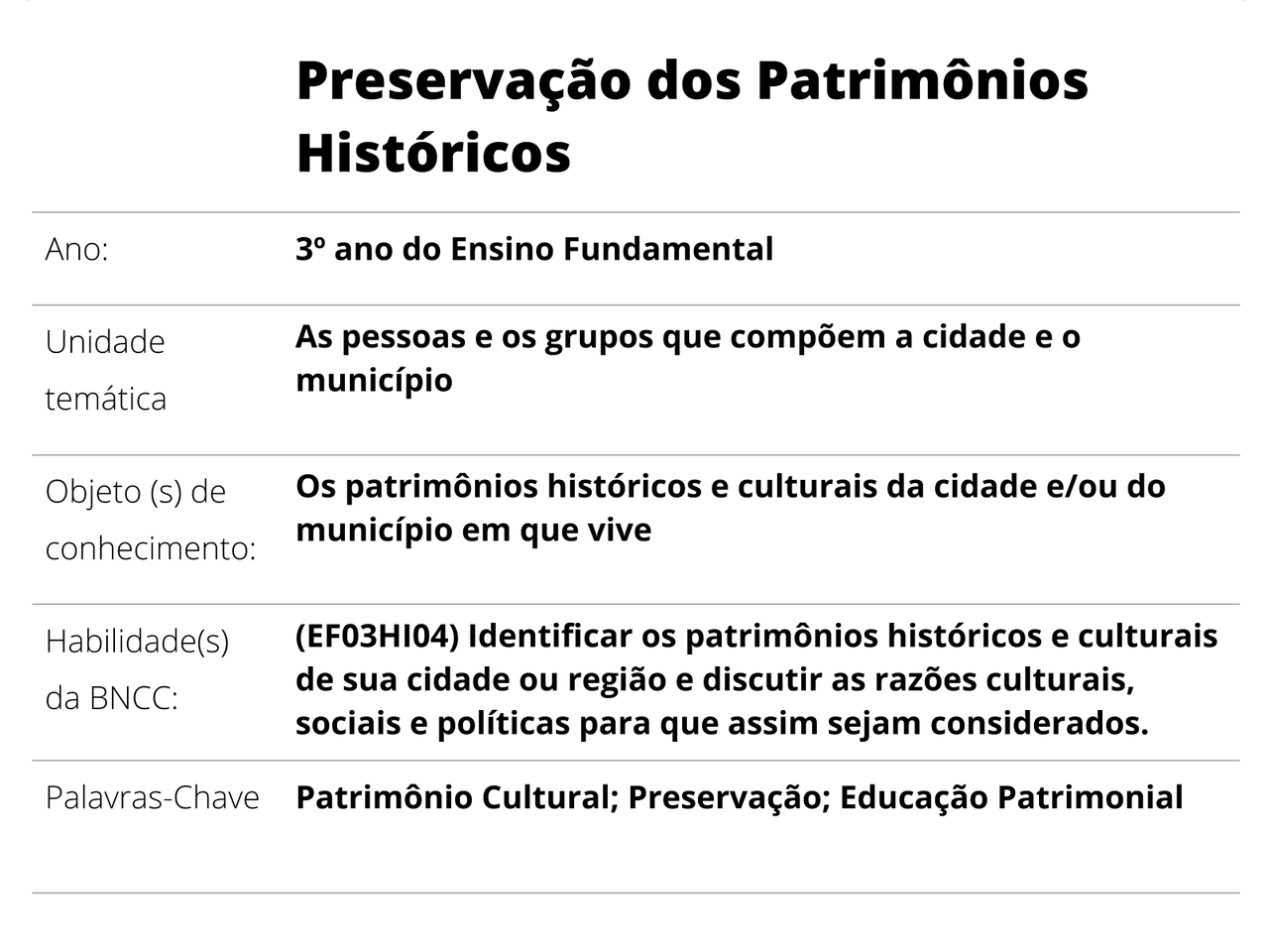 Plano De Aula 3º Ano Historia Preservacao Dos Patrimonios