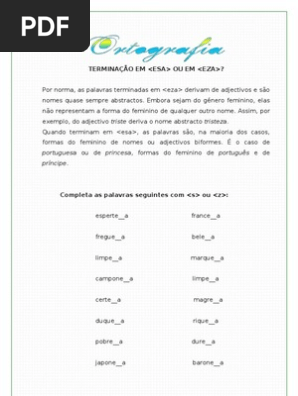 Aula Atividade Terminacao Das Palavras Com Esa E Eza Assim Eu