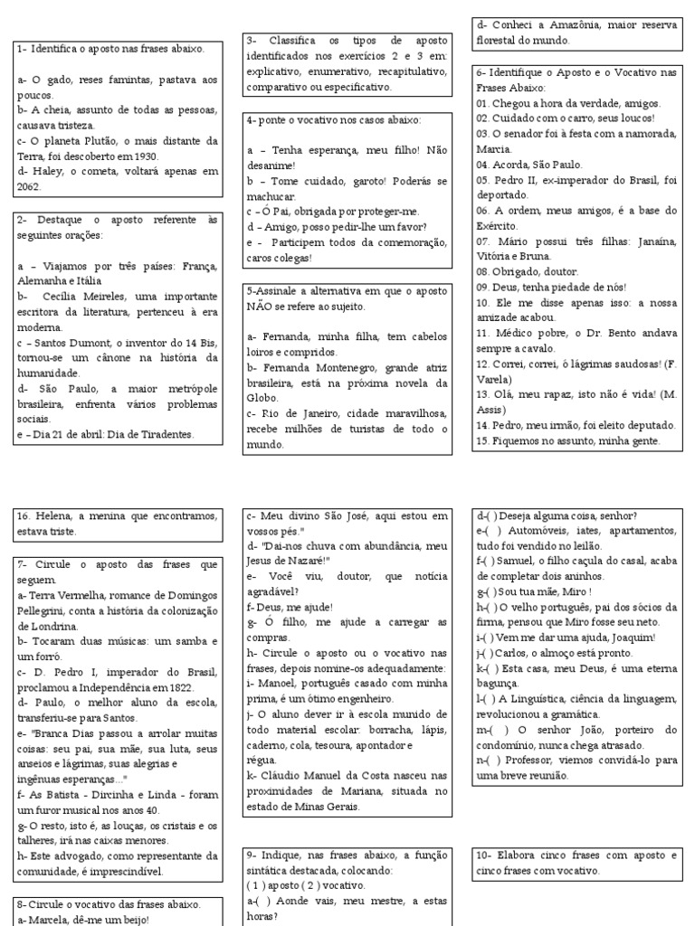 Atividades Aposto E Vocativo Brasil Avaliacao Gratuita De 30