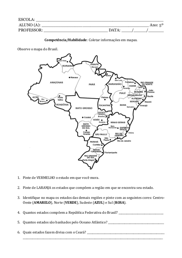 Atividades Estados Capitais E Regioes Do Brasil Geografia Em 2020