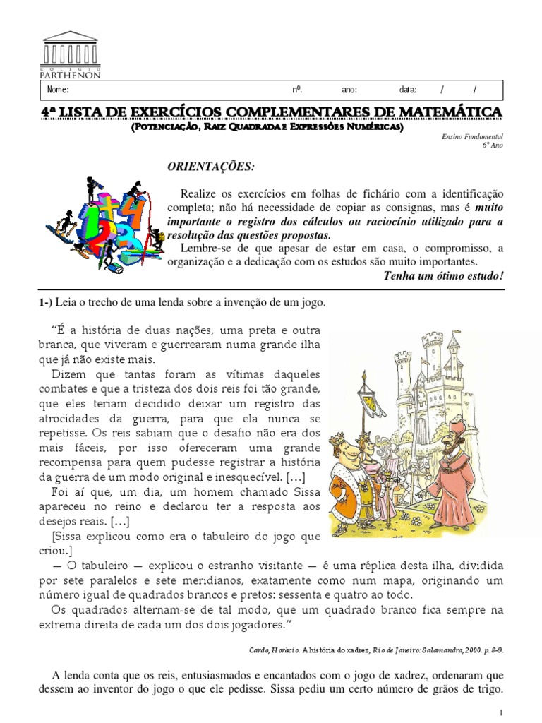 Lista De Exercicios Matematica 9º Ano 1º Bim
